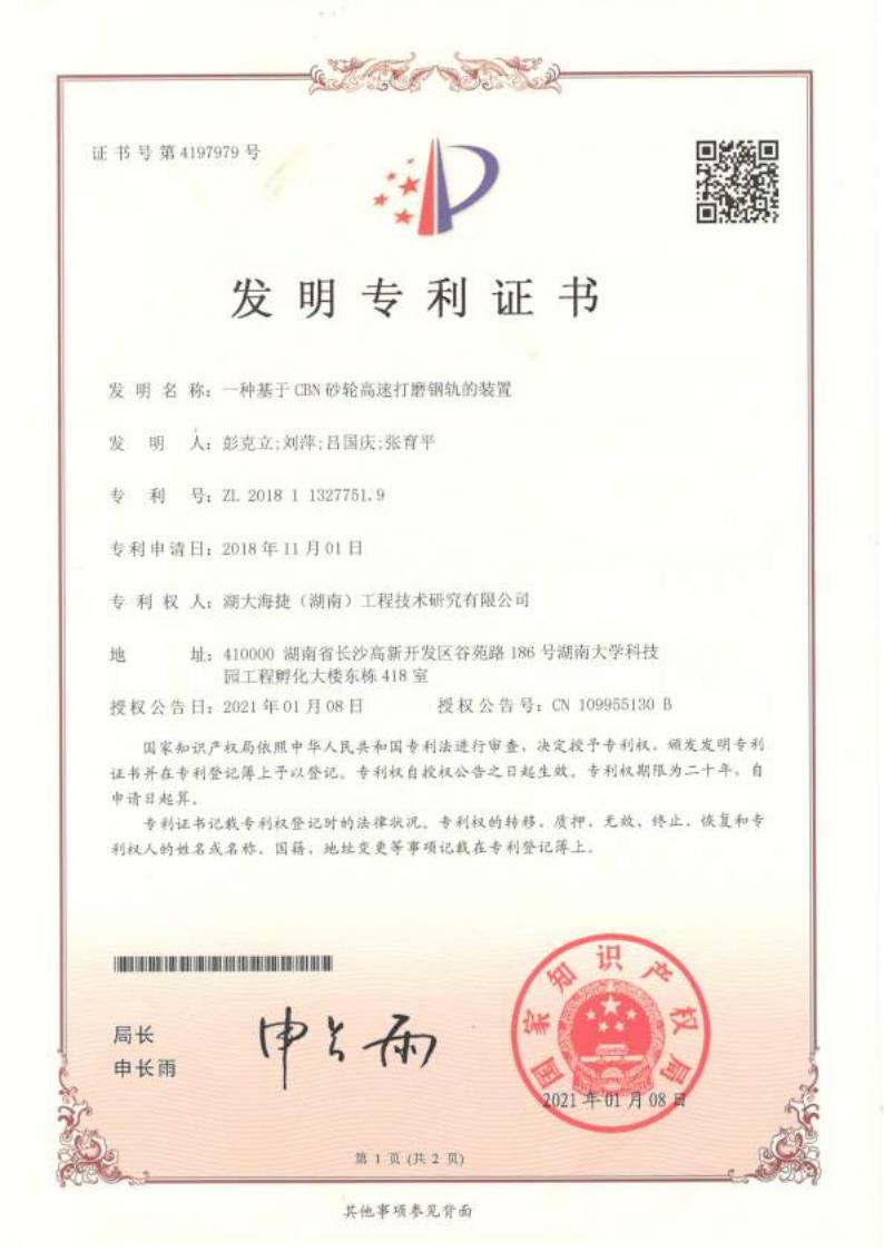 一种基于CBN砂轮高速打磨钢轨的装置