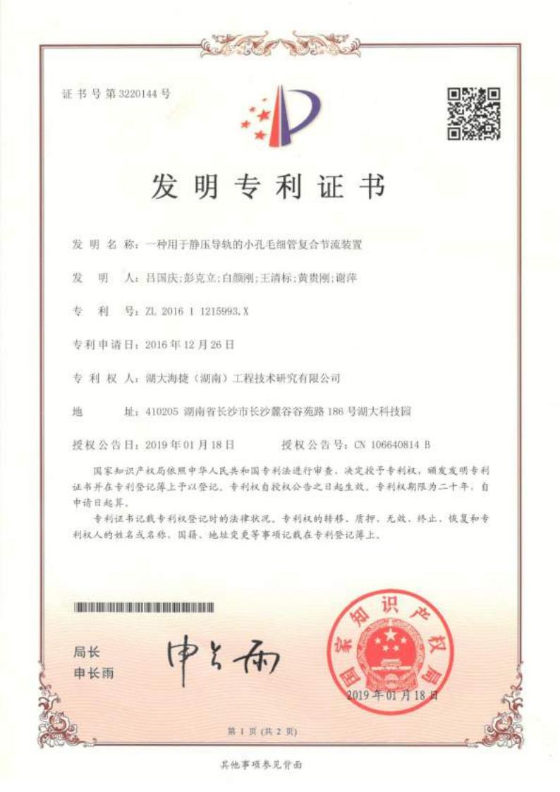 一种用于静压导轨的小孔毛细管复合节流装置
