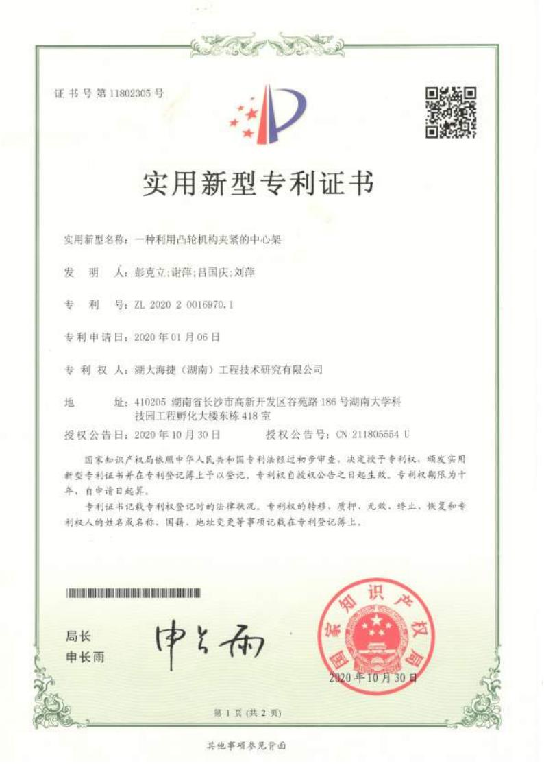一种利用凸轮机构夹紧的中心架