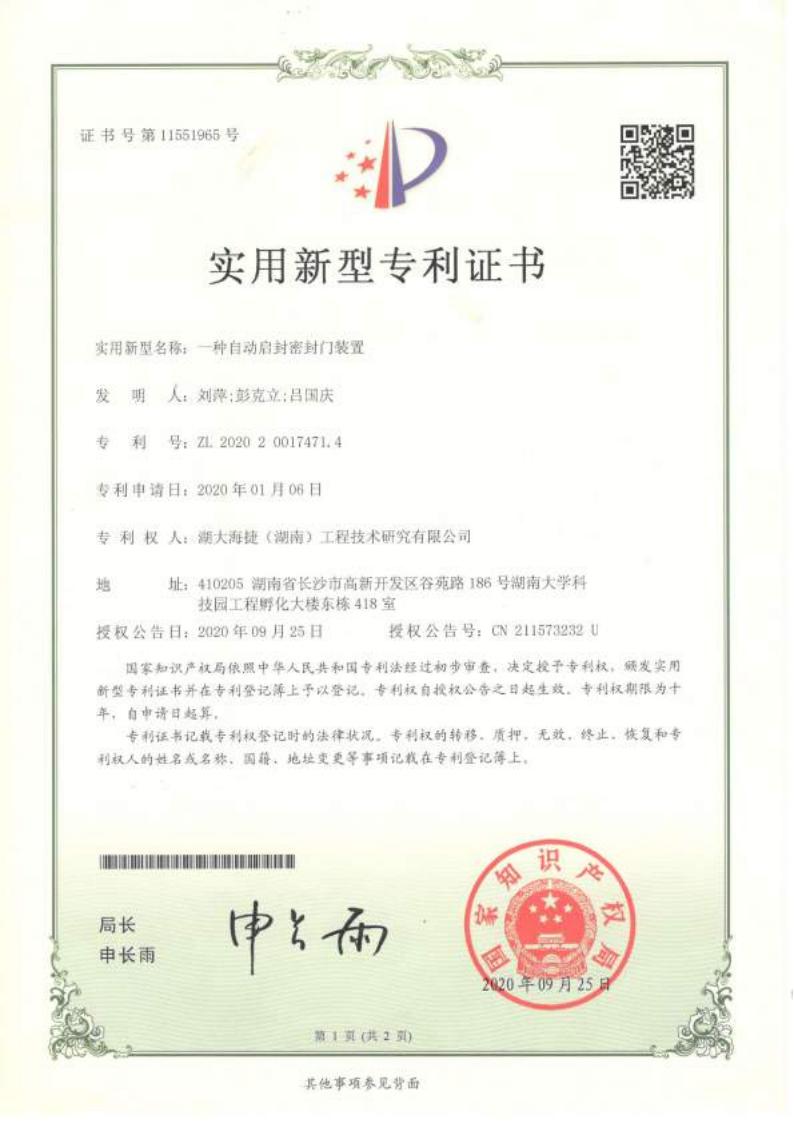 一种自动启封密封门装置