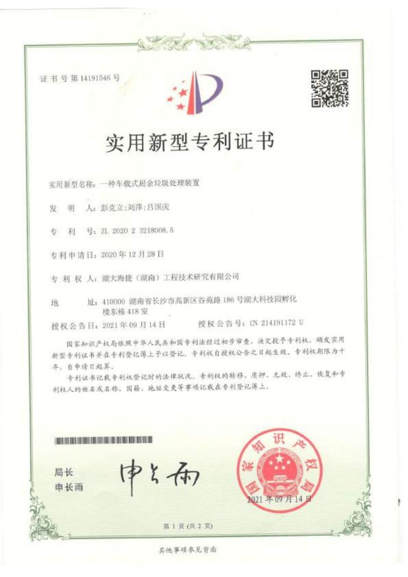 一种车截式厨余垃圾处理装置